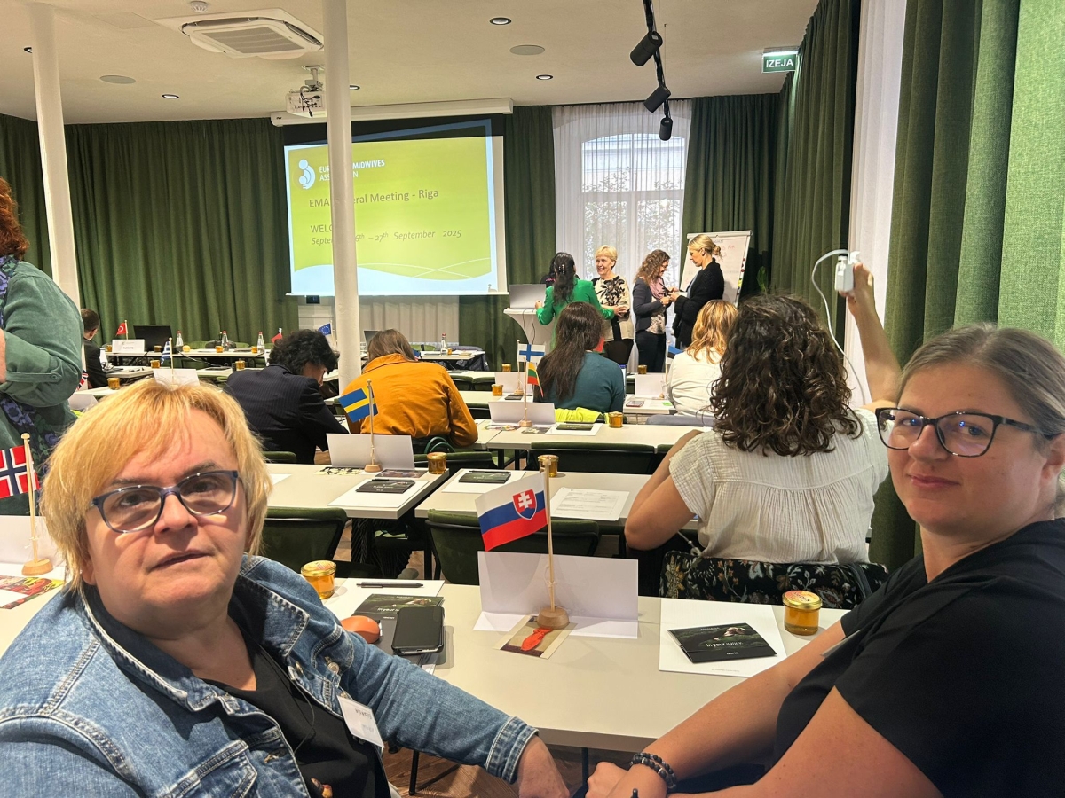 V dňoch 26. – 27. septembra 2025 sa v lotyšskej metropole Riga uskutočnilo valné zhromaždenie Európskej asociácie pôrodných asistentiek (EAM) – významné podujatie, ktoré každoročne spája zástupkyne pôrodných asistentiek z celej Európy. Slovensko na tomto prestížnom fóre zastupovala delegácia Slovenskej komory sestier a pôrodných asistentiek (SKSaPA), v ktorej nechýbala ani PhDr. Adriana Nemčoková, PhD., MPH, odborníčka a pedagogička Vysokej školy zdravotníctva a sociálnej práce sv. Alžbety, n. o. Spolu s ňou sa zasadnutia zúčastnili aj PhDr. Júlia Jankovičová, PhDr. Jana Gelatíková a Mgr. Barbora Abrmanová.