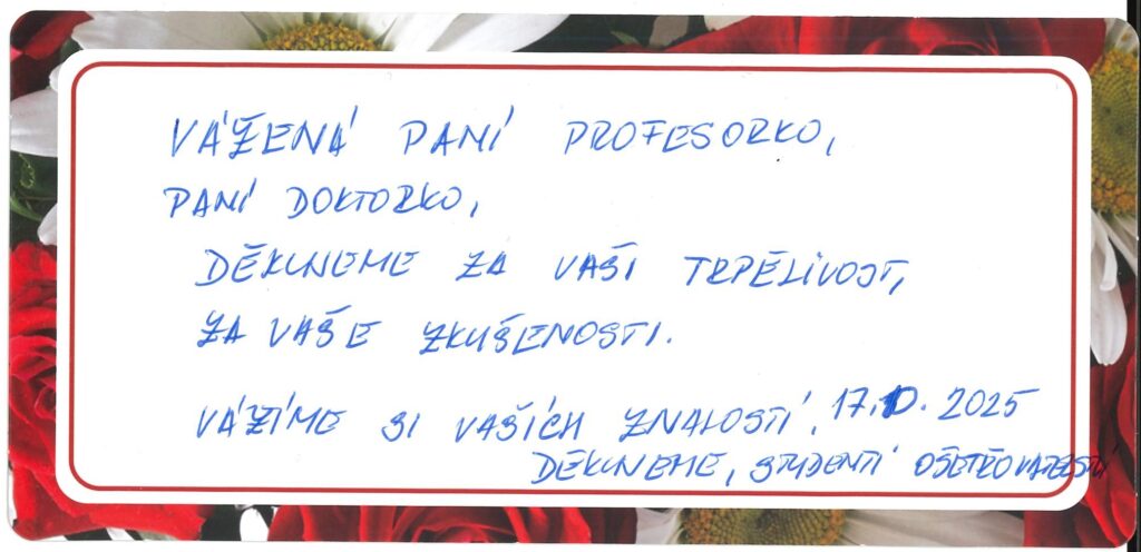 Ústav sv. Jána Nepomuka Neumanna, Příbram, Česká republika ďakujú pedagógom z Detašovaného pracoviska bl. Sáry Salkaházi v Rožňave VŠZaSP.