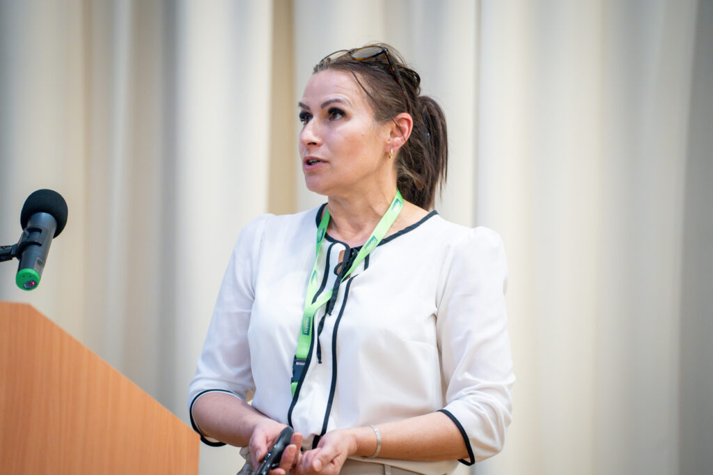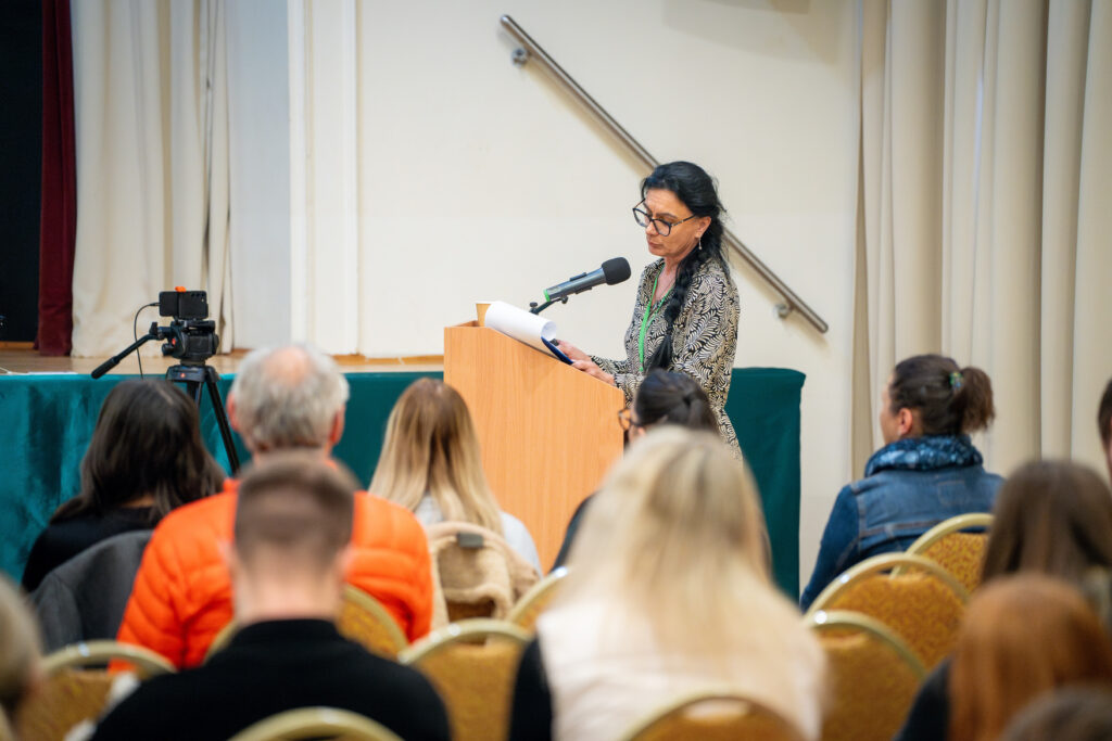 Medzinárodný rozmer konferencie podčiarklo aj vystúpenie prezidentky európskeho regiónu International Federation of Social Workers (IFSW), Dr. Ruth Allen, ktorá sa účastníkom prihovorila prostredníctvom online spojenia z Londýna.