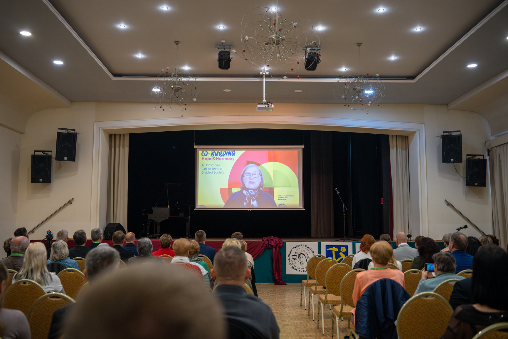 Medzinárodný rozmer konferencie podčiarklo aj vystúpenie prezidentky európskeho regiónu International Federation of Social Workers (IFSW), Dr. Ruth Allen, ktorá sa účastníkom prihovorila prostredníctvom online spojenia z Londýna.